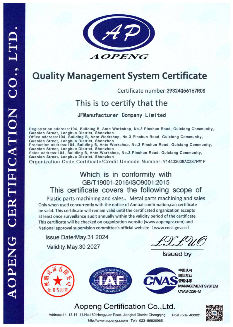 At JFManufacturer, quality is not a single step, but a systematic process integrated into every stage of our operation. Our robust Quality Assurance (QA) system is designed to ensure that every component we deliver strictly conforms to your drawings and technical specifications for precision, accuracy, and reliability.